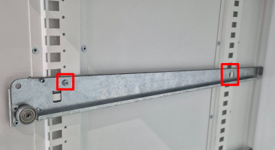 Для изменения высоты установки полки выкрутите винт крепления направляющей, заднюю часть вытащите из паза: