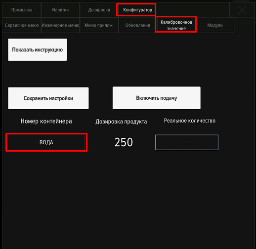- После настройки уровня воды сделайте сверку выдачи воды в сервисном меню "Калибровочное значение".