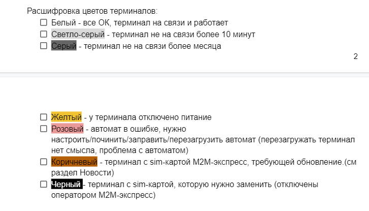 Для удаленного мониторинга состояния терминала (ЛК Vendista) используется расшифровка цвета статуса.