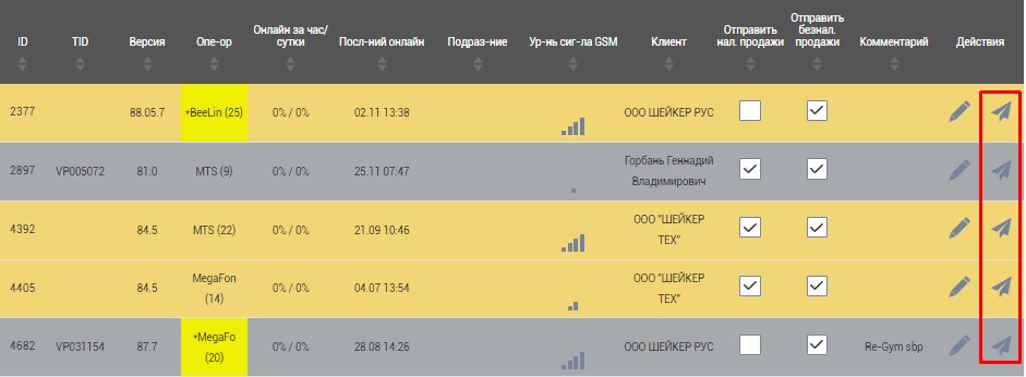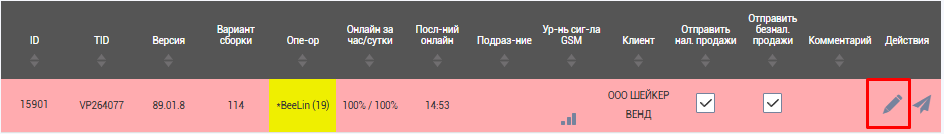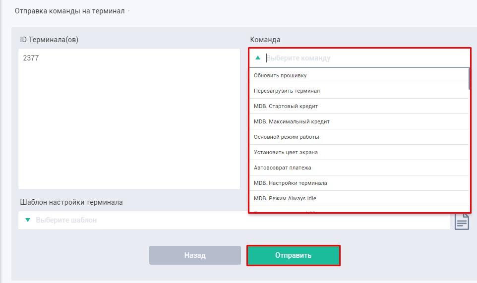 Если это не вывело терминал из режима ОТК, то необходимо набрать номер терминала в поле для ввода параметра и отправить команду.