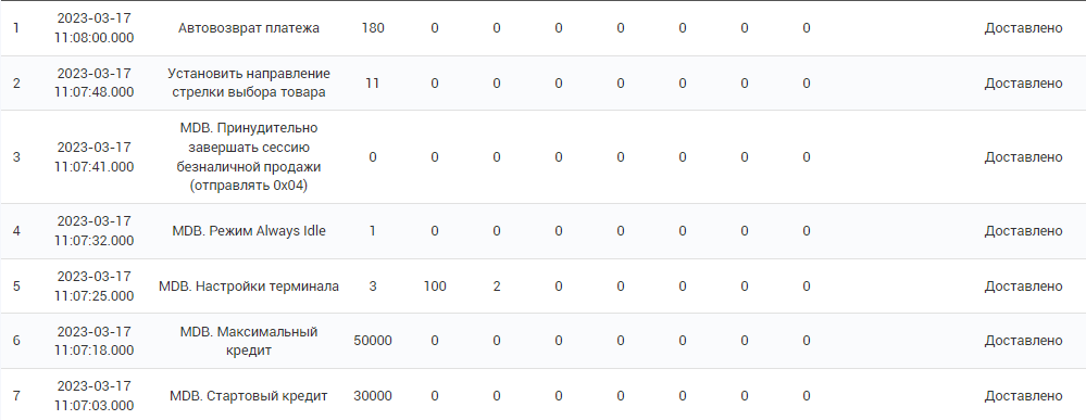 Ошибка 4: неправильный уровень MDB. Убедитесь, что уровень MDB в настройках автомата совпадает с настройками терминала. На портале Vendista открыть вкладку «Терминалы», нажать на самолетик и в блоке отправки команд выбрать из списка основные команды терминала и команды для СБП (при необходимости).