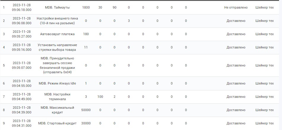 - Отправить команду «Основной режим - 0» (MDB);