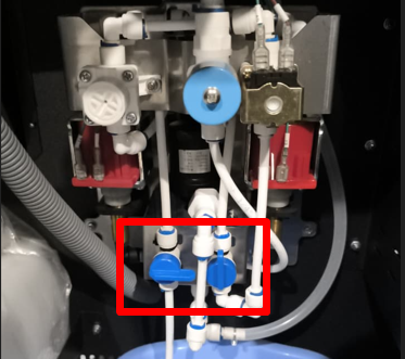 В случае, если после выполнения подключения вода подается, но при перезагрузках ошибка 1 Нет воды продолжает появляться - необходимо проверить уровень воды в миксере. Запустите прокачку в сервисном меню и сверьте уровень потока с картинкой: