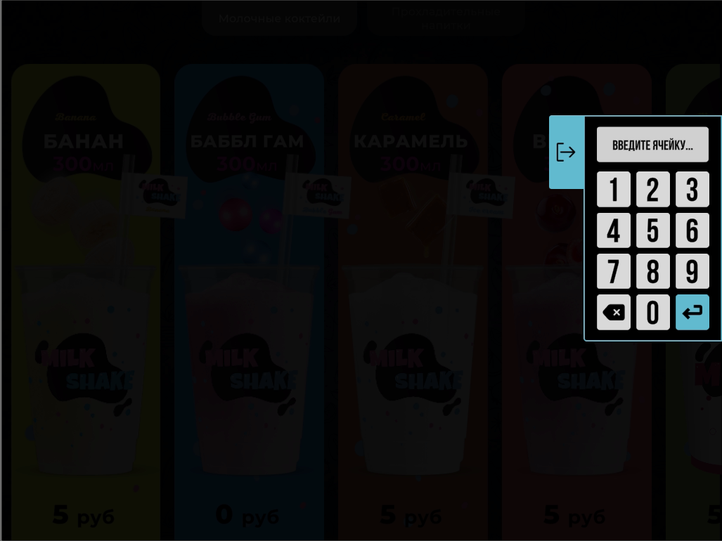Нажмите на любую активную ячейку для просмотра информации. При выборе ячейки отобразится название товара (как указан в телеметрии), цена товара, текущий остаток и статус ячейки.