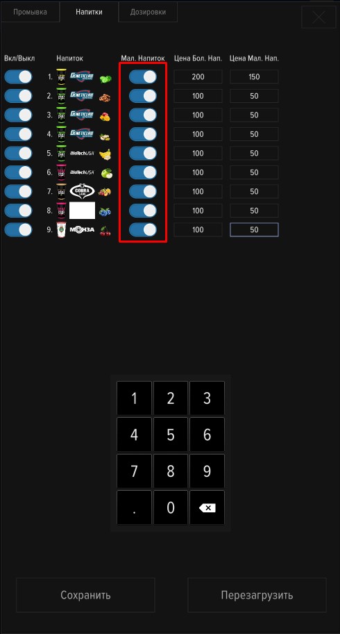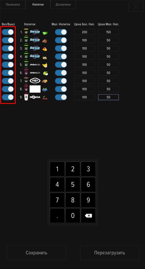 Ответ: Активируйте галочку в сервисном меню, затем настройте цены и дозировки.