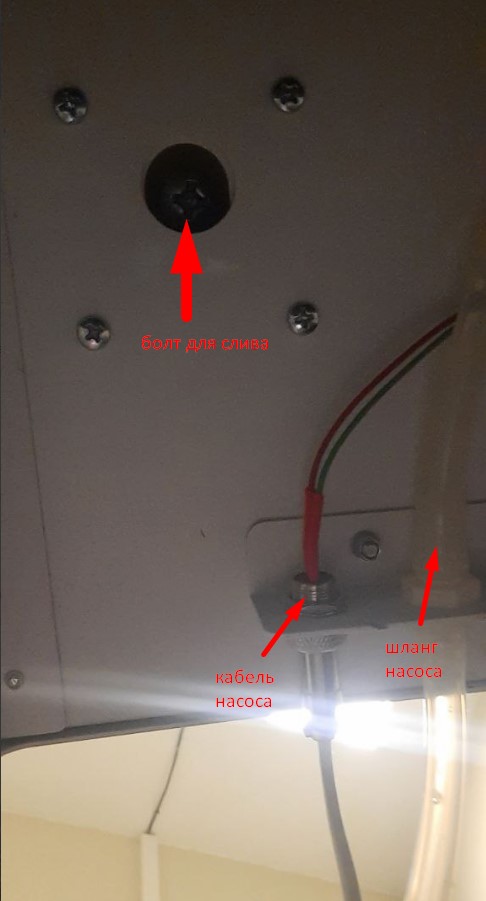 Ответ: Снизу автомата открутите сливной болт под охладителем.