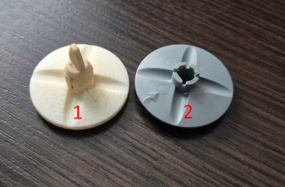 Ответ: Крыльчатка с носиком (№1) - предназначена для работы с протеинами и спортпитом. Так как протеины более плотные и тяжелые, им требуется более тщательное смешивание. Крыльчатка без носика (№2) предназначена только для молочных смесей. Молочные смеси Shaker легче и перемешиваются лучше, поэтому в аппаратах Milkshaker устанавливается крыльчатка без дополнительной лопатки.