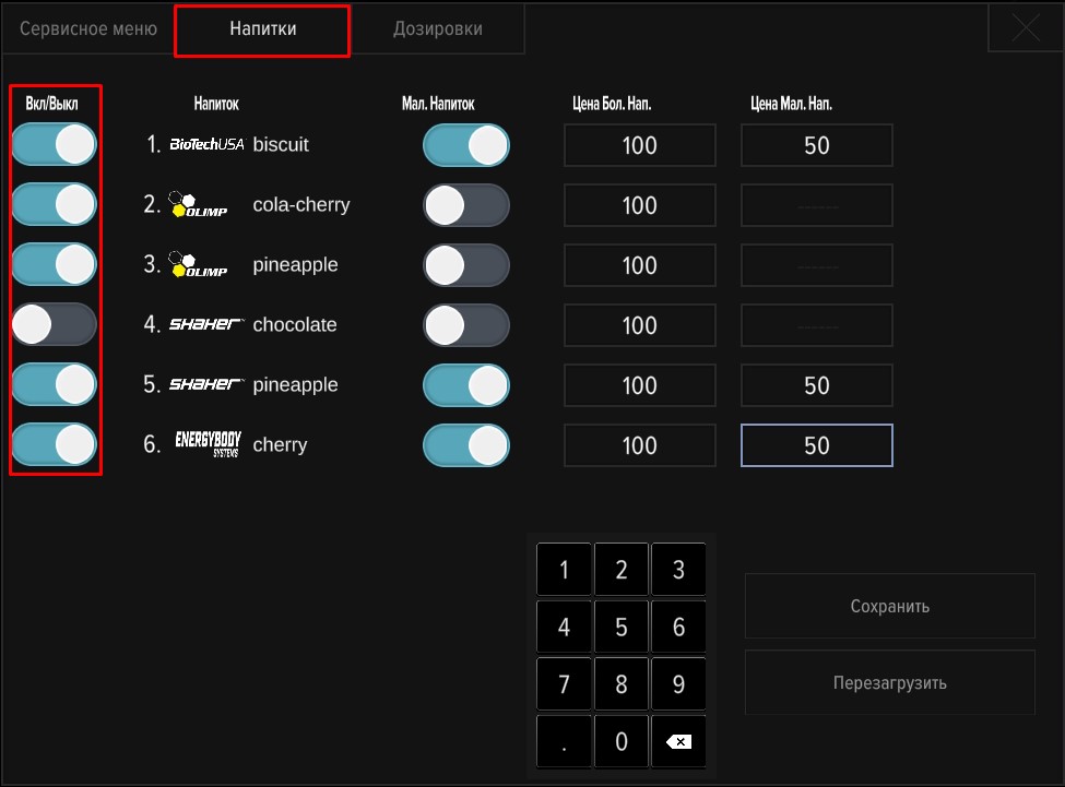 Ответ: Активируйте галочку в сервисном меню, затем настройте цены и дозировки.