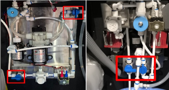 Depending on the date of manufacture, the machine can be equipped with two configurations of water supply - with ULKA, or 24V pumps. The steps for preparing the water supply are the same for both configurations.