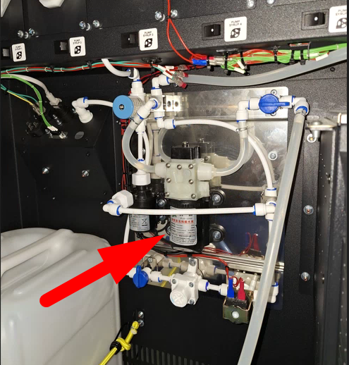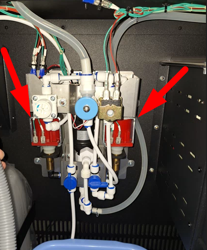 Depending on the date of manufacture, the machine can be equipped with two configurations of water supply - with ULKA, or 24V pumps. The steps for preparing the water supply are the same for both configurations, the difference lies in the selection of the appropriate pump and its water supply level in the service menu.