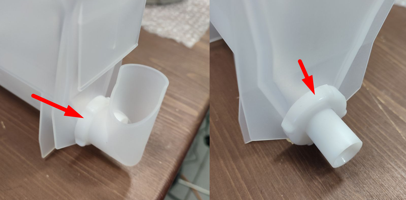 - Надеть коннектор на клапан и провернуть вороток на коннекторе по часовой стрелке до упора, при этом красные флажки на клапане должны сместиться в нижнее положение, в шланг должен поступить концентрат;
