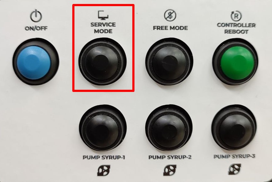 Нажмите кнопку SERVICE MODE. Открывает доступ к меню настроек автомата.