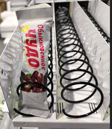 - Пружина на 10 и 14 товаров (маленькие/средние снеки) - положение на 90 градусов влево;