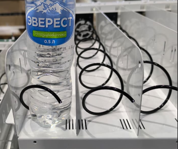 - Пружина на 5 товаров (бутылки) - положение на 90 градусов вправо.