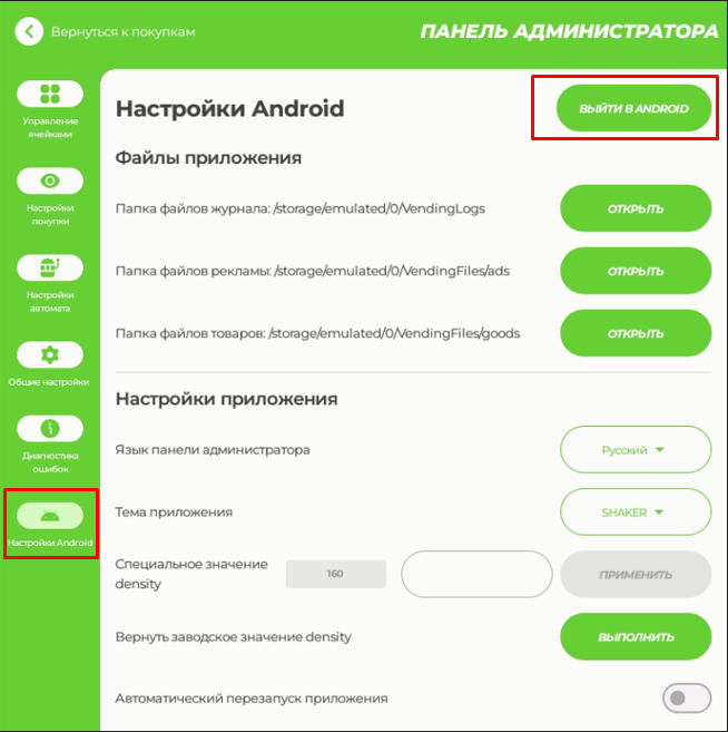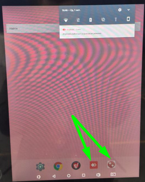 Откройте раздел "Настройки Android" и нажмите «Выйти в Android» чтобы свернуть приложение. На панели инструментов откройте программы AnyDesk или МойАссистент. Запросите у технической поддержки Shaker пароль для подключения.