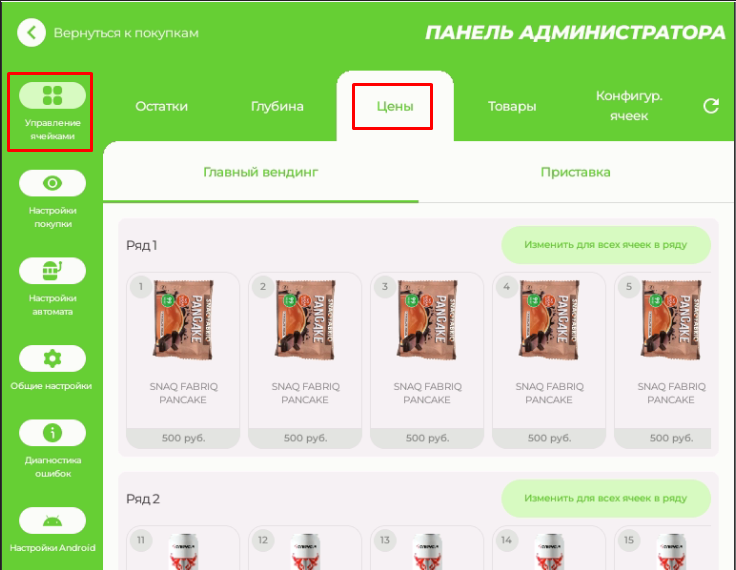 Откройте раздел "Управление ячейками" - "Цены". Выберите нужную ячейку, введите цену и нажмите «Применить».