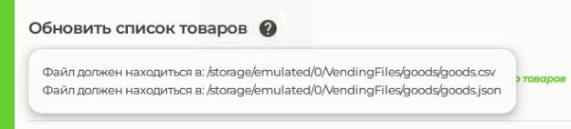 Для просмотра всех доступных товаров перейдите в раздел "Общие настройки" - "Товары". Загрузить файл в память автомата можно с помощью удаленного доступа к автомату через программы AnyDesk, МойАссистент или с помощью флеш-карты.