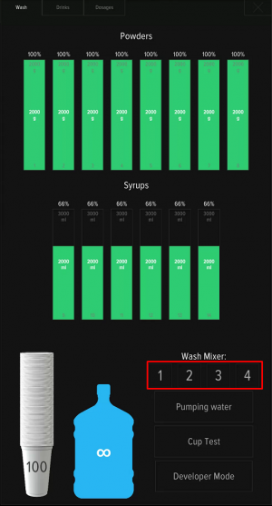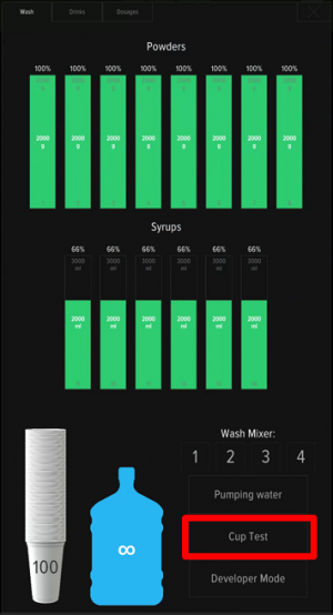 On the «Washing» tab, click the «Cup Test» button.