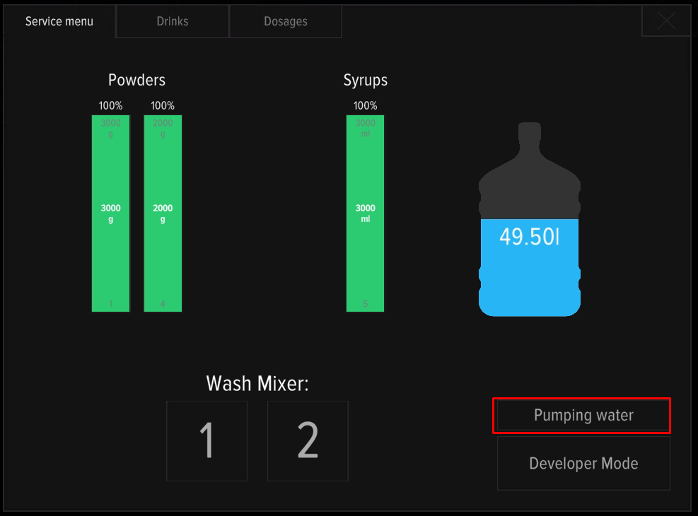 - The water level when rinsing the mixer / pumping water is not less than the optimal level (picture below):